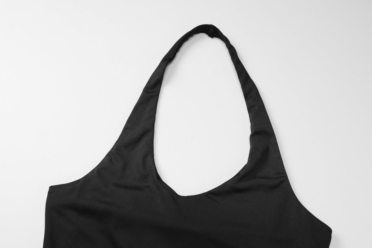 Women Clothing Summer Solid Color U Shaped Collar Sleeveless Halter Ribbon Backless Dress