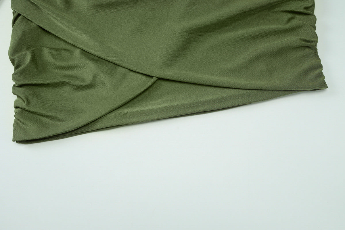 Women Clothing Summer Sleeveless Halter Pleated Waist Tight Slim Sexy Skinny Sheath Dress