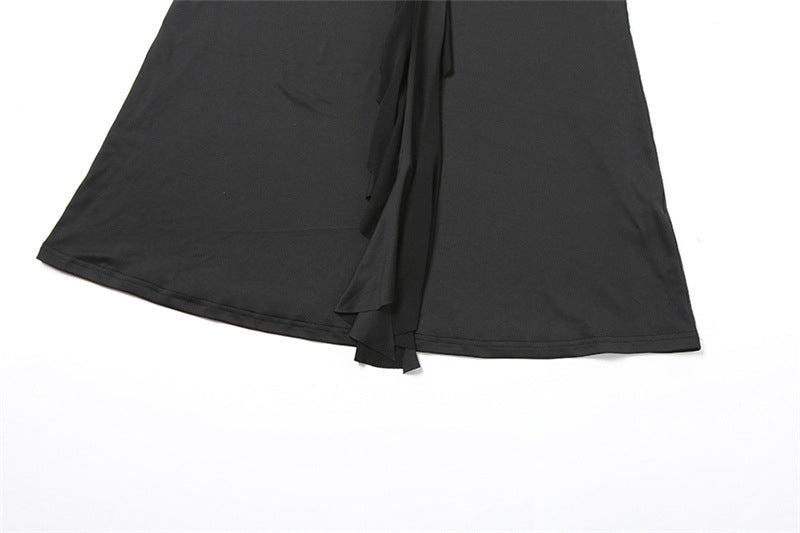 Women Clothing Solid Color Half Collar Slim Fit Sexy Metal Frog Button Dress