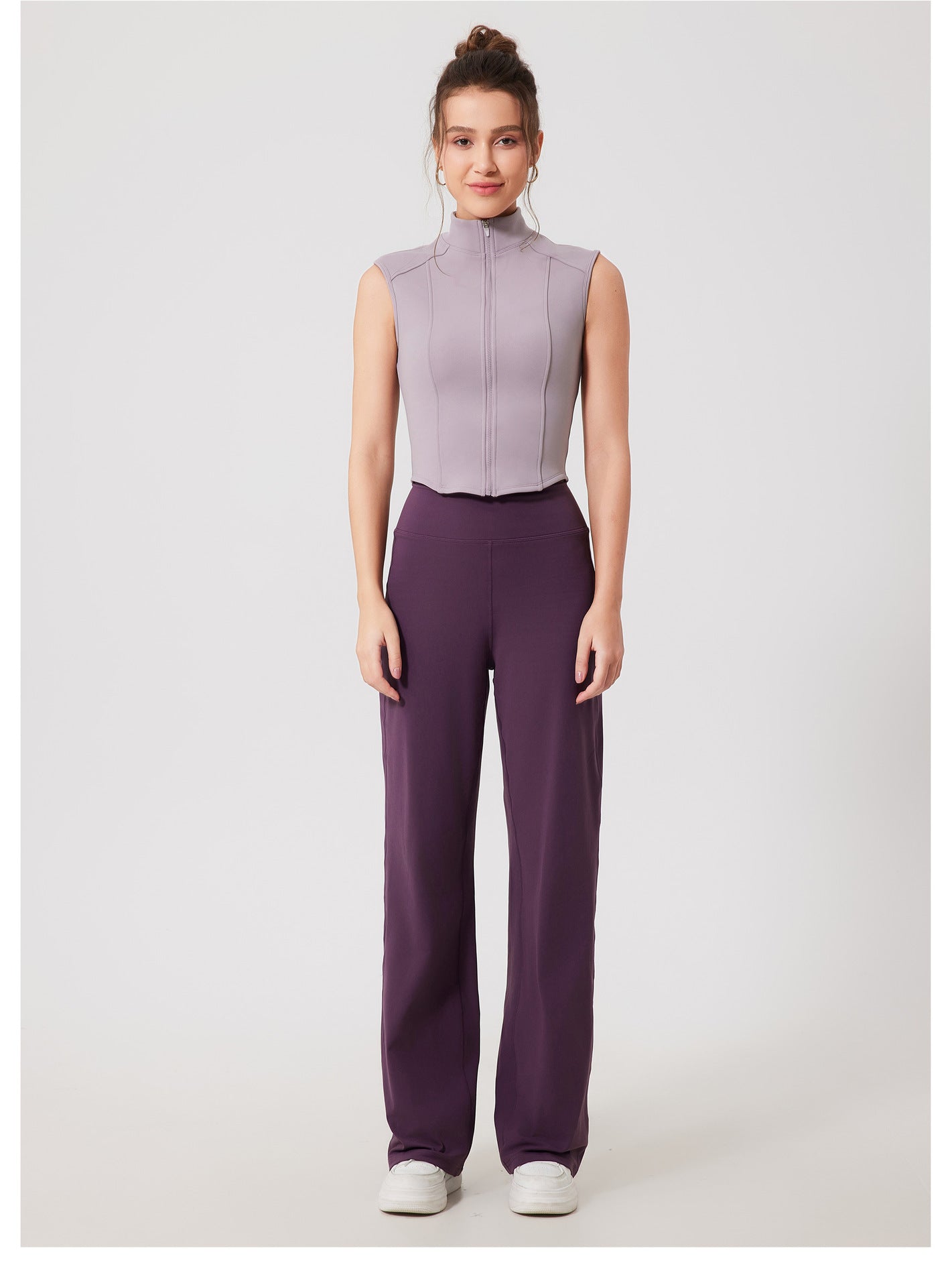 A sleek, sculpting vest designed for clean lines and effortless layering. Its streamlined silhouette, high mock neck, and full-zip finish create a polished athletic look—perfect for studio sessions, warmups, or styled casually on the go.