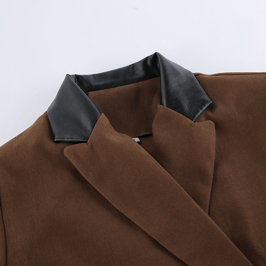 Autumn High Sense Casual Women Short High Waist Color Stitching Irregular Asymmetric Skirt Two Piece Sets