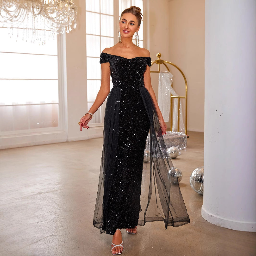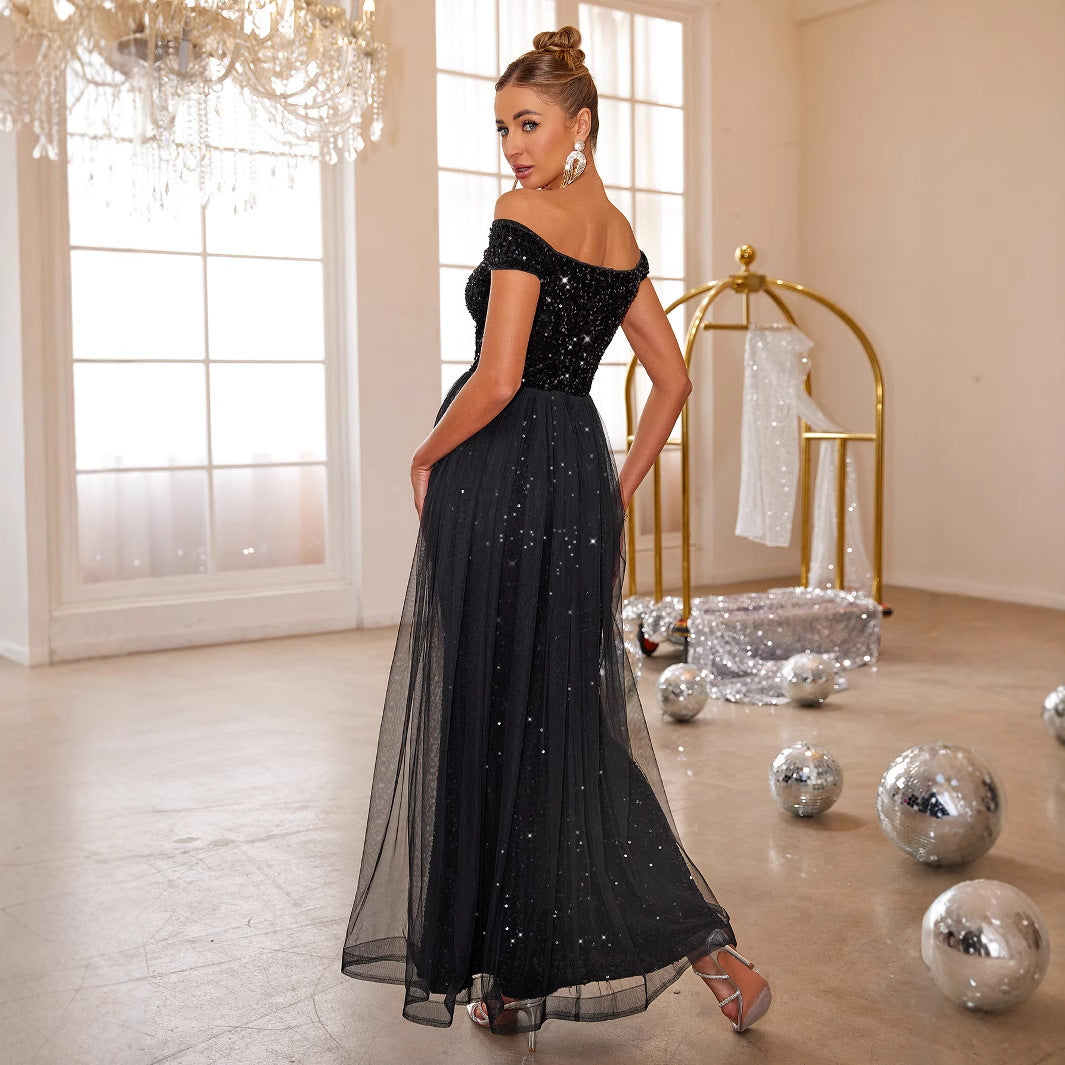 Solid Color Long Sleeveless Slim Big Swing Dress Evening Dress