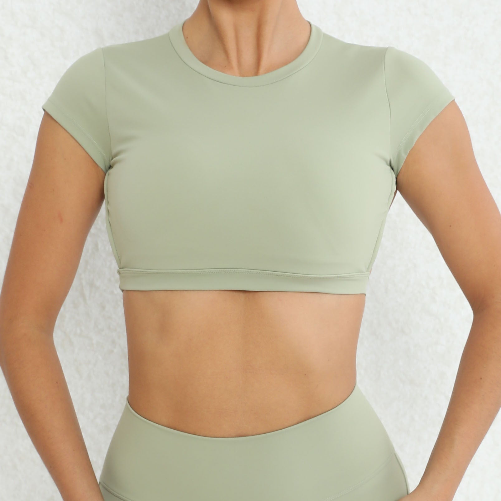 Nude Feel Yoga Bare Back Quick Drying Skinny Exercise Top Outdoor Running Belt Chest Pad Fitness T Shirt