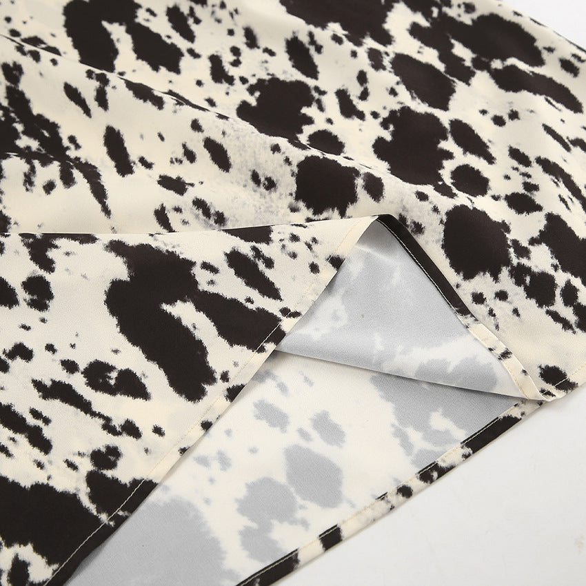 Autumn Winter Sexy Design Print Sling round Neck All Matching Ankle High Retro Party Formal Dress Women