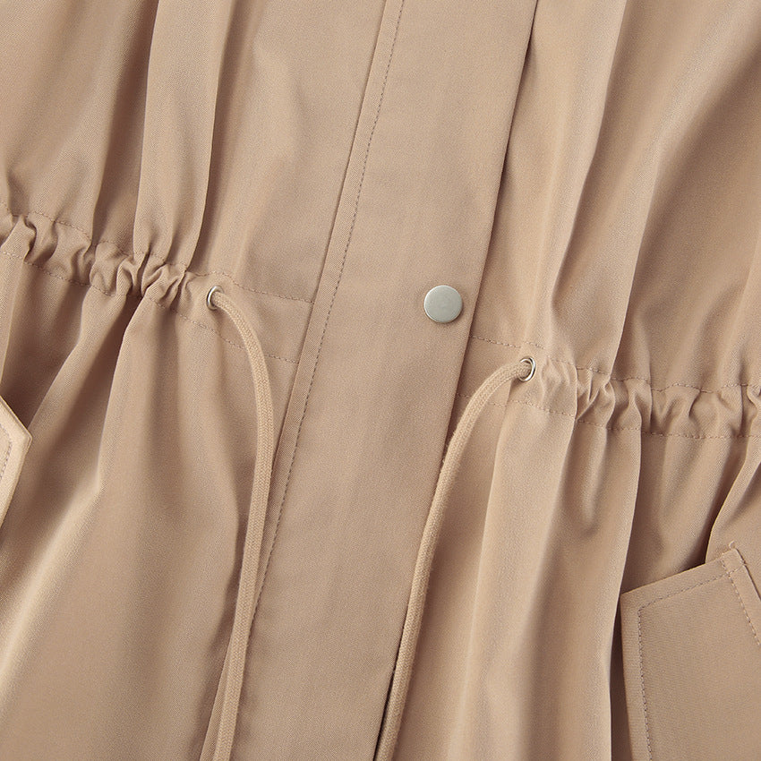 Women Design Mid Length Simple Casual Loose Waist Controlled Lace up Drawstring Trench Coat