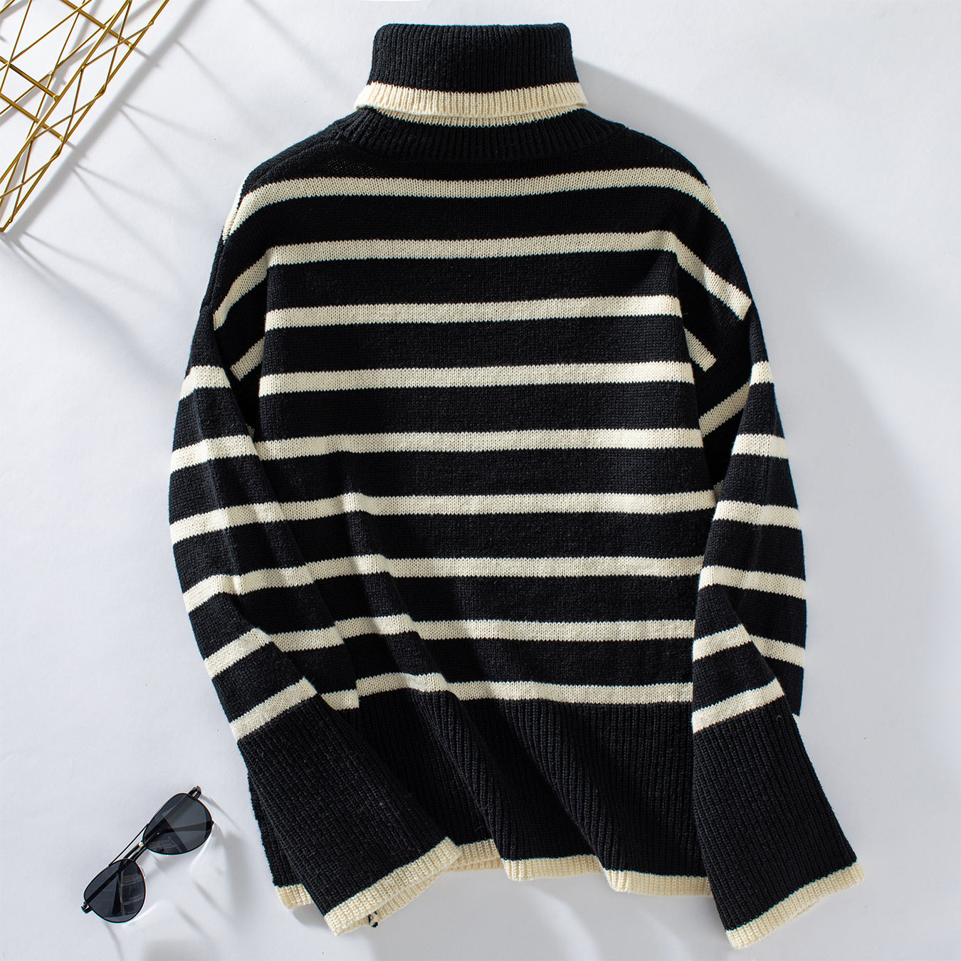 Winter Knitting Pullover Collared Office Striped Women Clothing Sweater Women