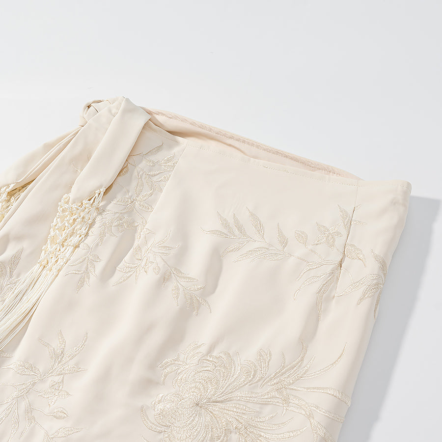 Women's Clothing Embroidery Tassel Hem Decoration Vacation Sheath Mini Skirt Summer