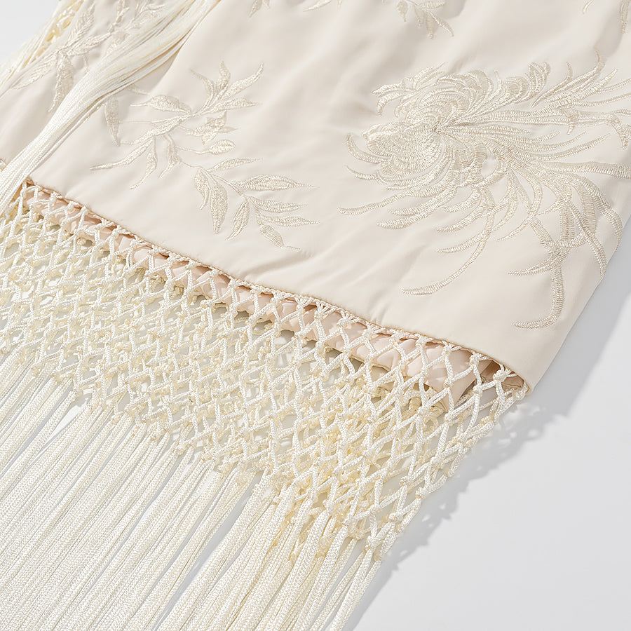 Element: Fringe,Embroidery,Asymmetric,Tie