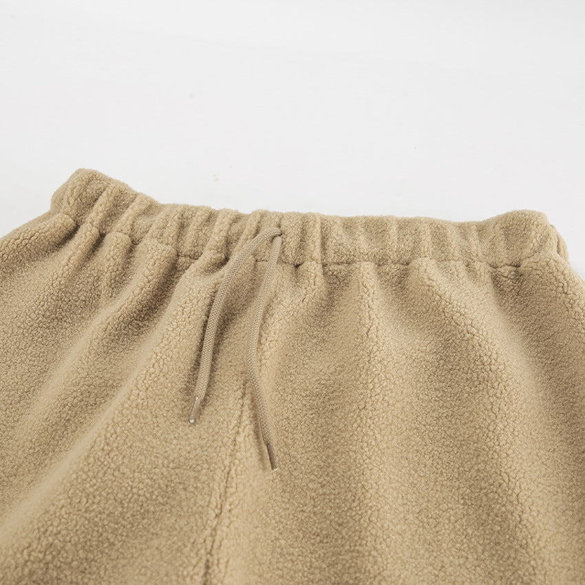 Autumn Winter Warm Thick Polar Fleece Casual Trousers Lace up Loose Mid Waist Wide Leg Pants for Women