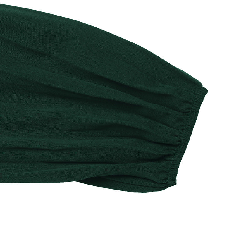 Elegant Dignified Women Dress Office Long Sleeve Pleated round Neck High Dress