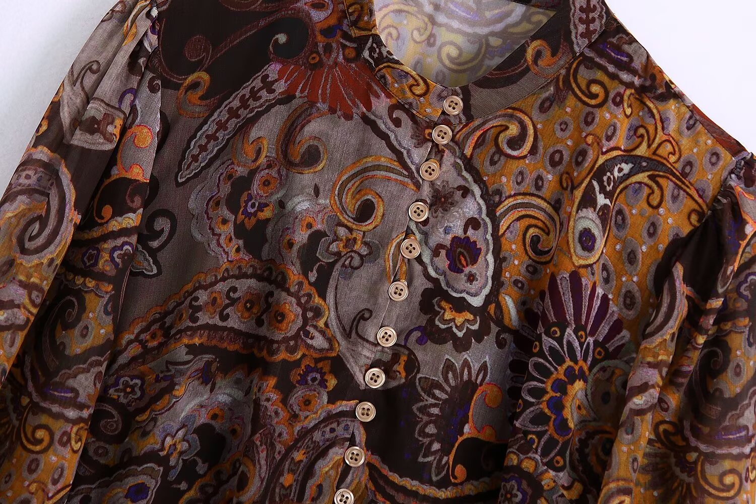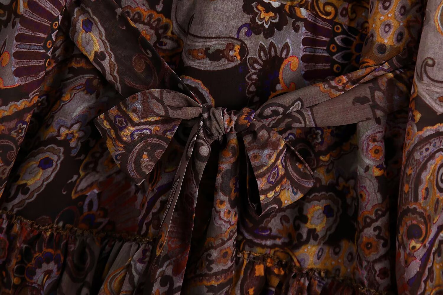 The Elowira Ethnic Dress blends boho charm with refined elegance, featuring a rich paisley print and a softly tiered silhouette. Designed with delicate ruffles and a cinched waist, it offers a flattering shape while maintaining effortless movement.