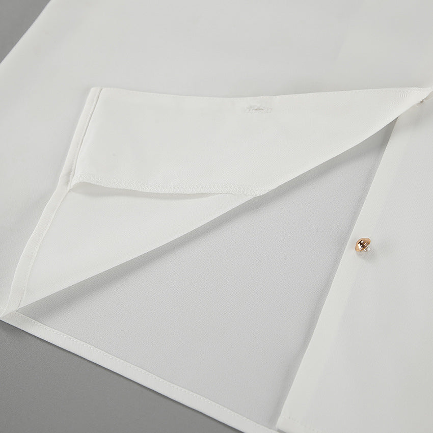 Fall White Sexy Collared Slim Fit Slimming Long Sleeves Shirt Hollow Out Cutout Design Chiffon Shirt for Women