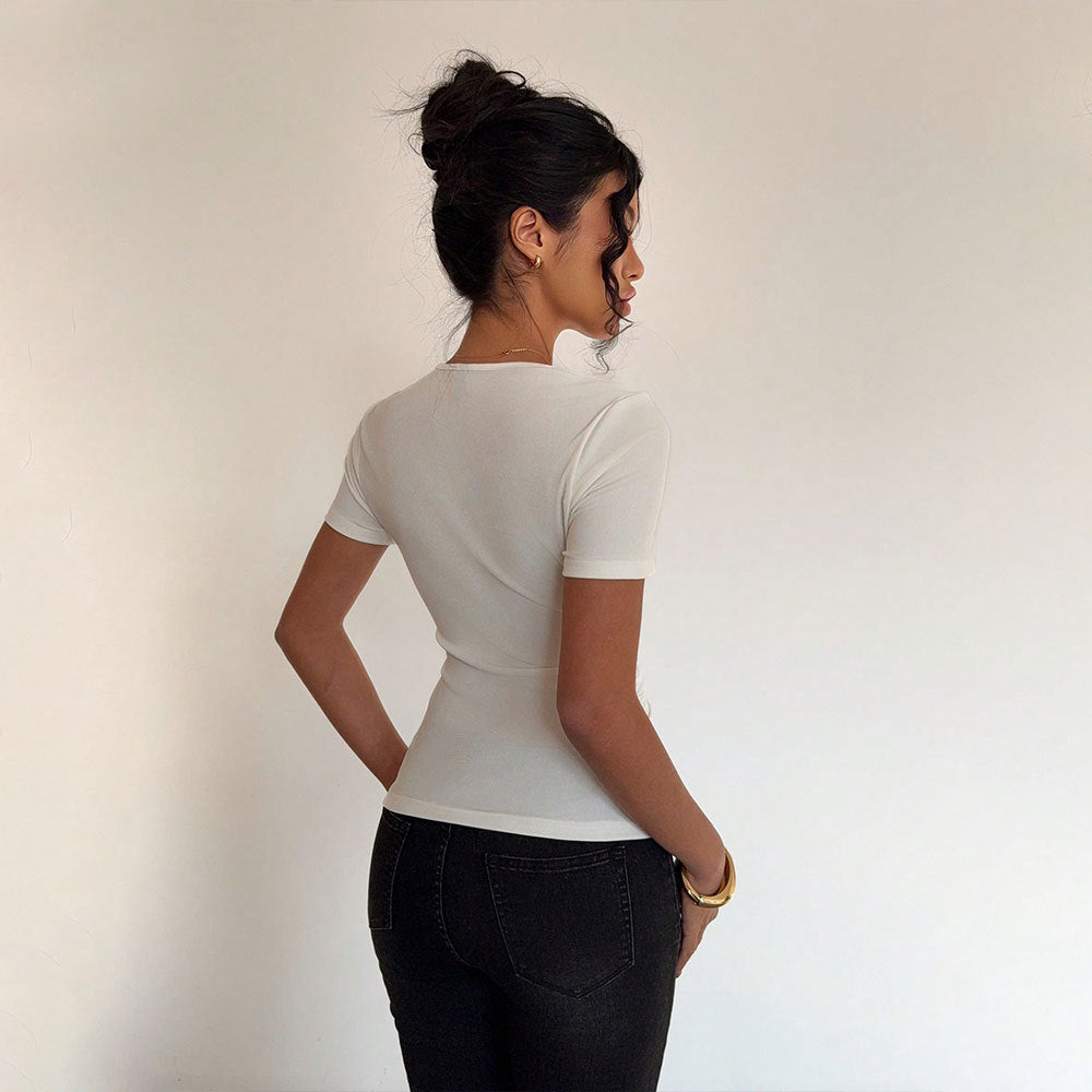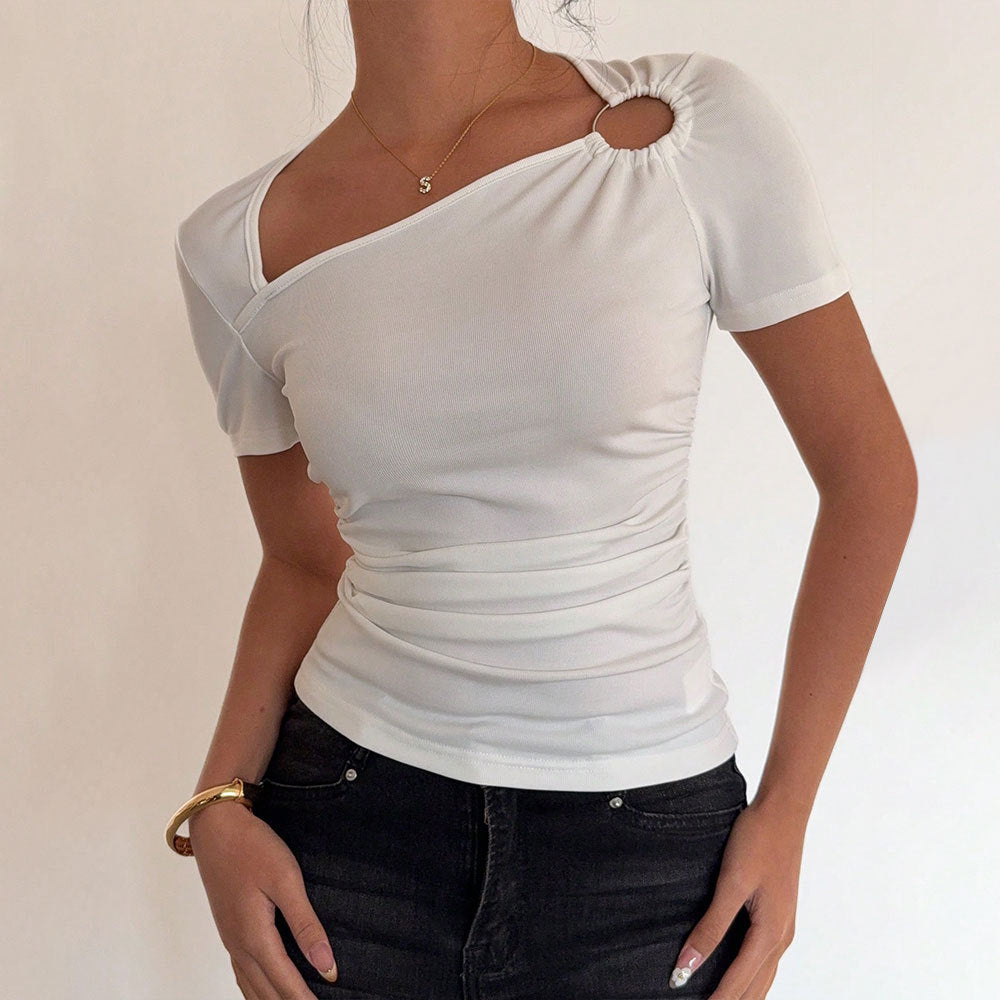 High Cold Adult Lady like Woman T shirt Summer TK Women Clothing Slim Waist Solid Color Short Sleeve Top