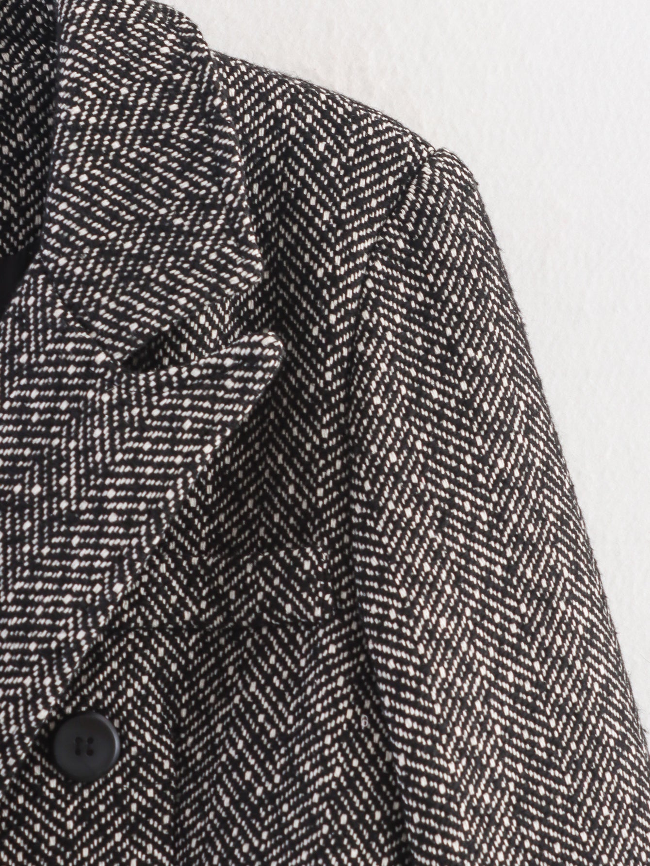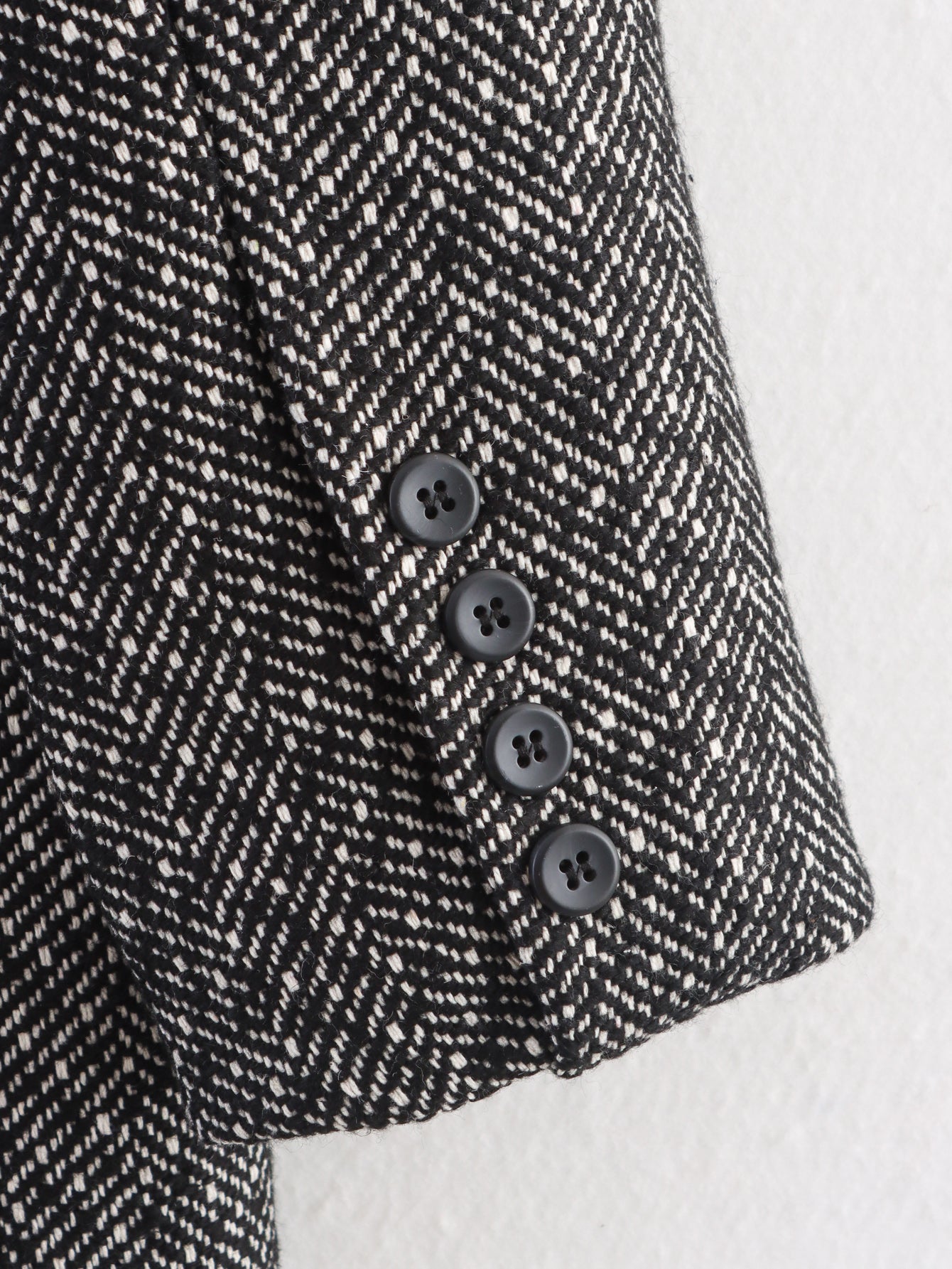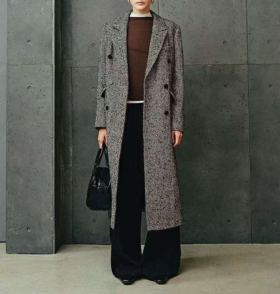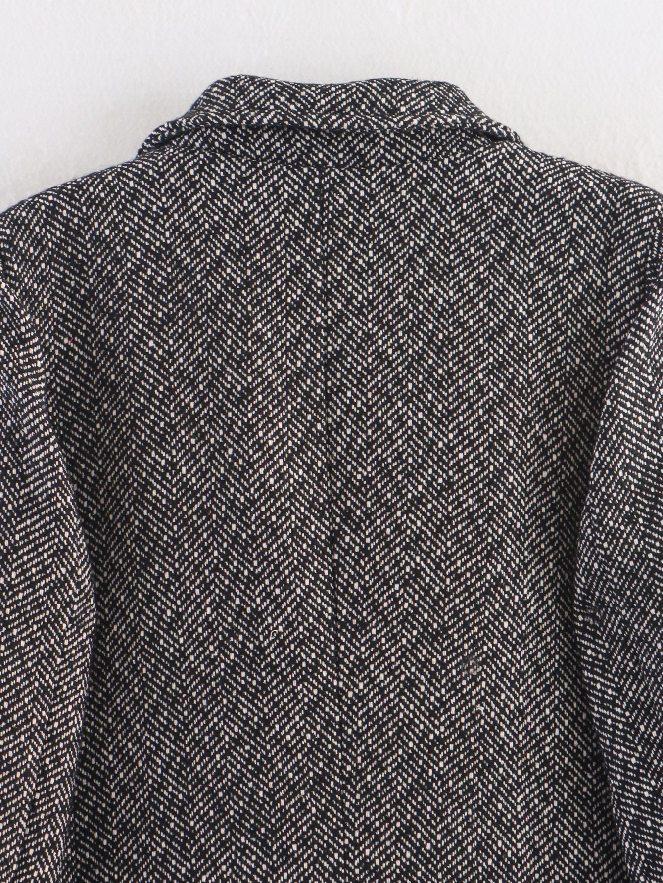 Elegant Women British Herringbone Pattern Loose Office Woolen Coat