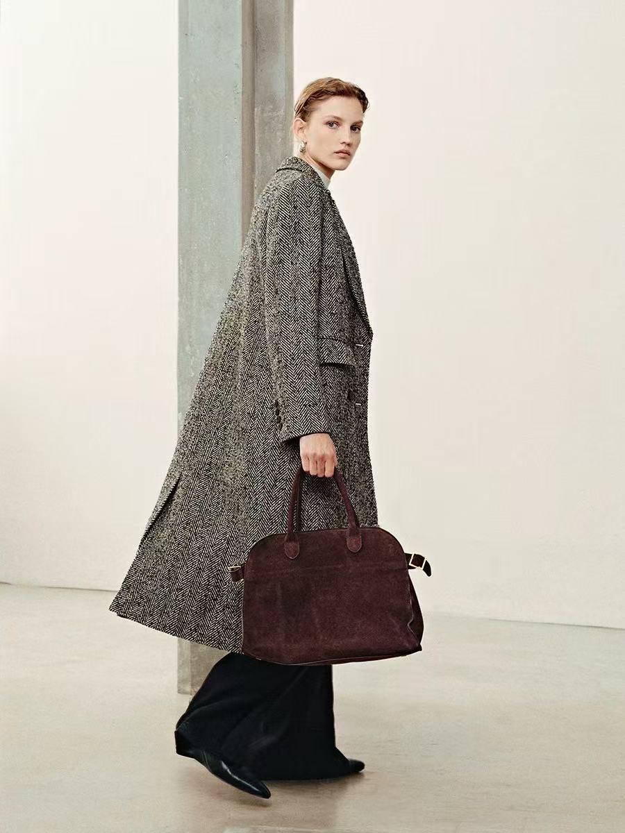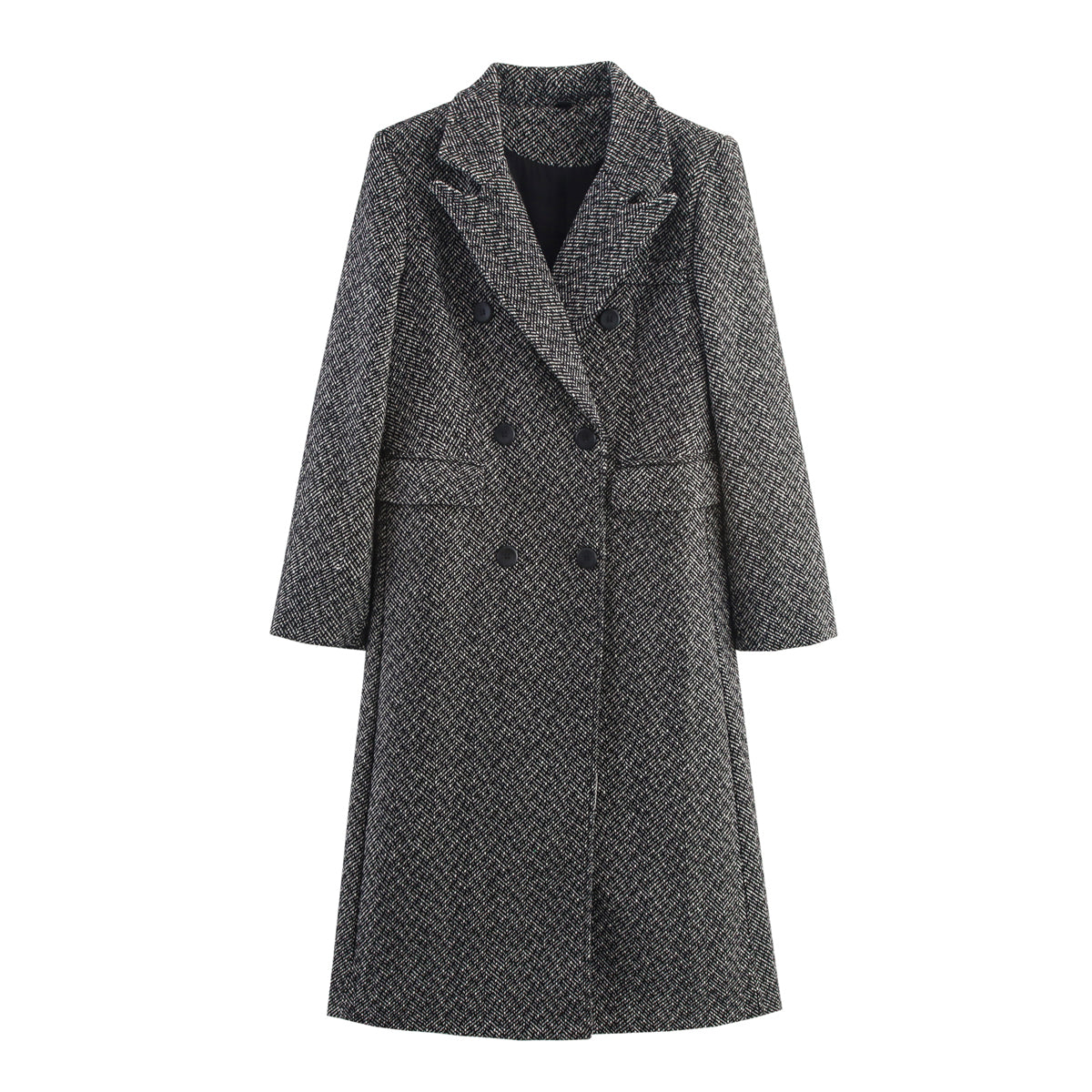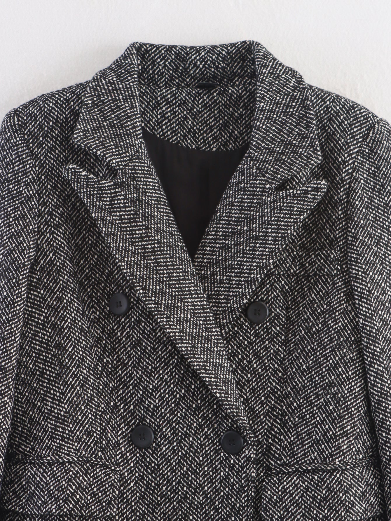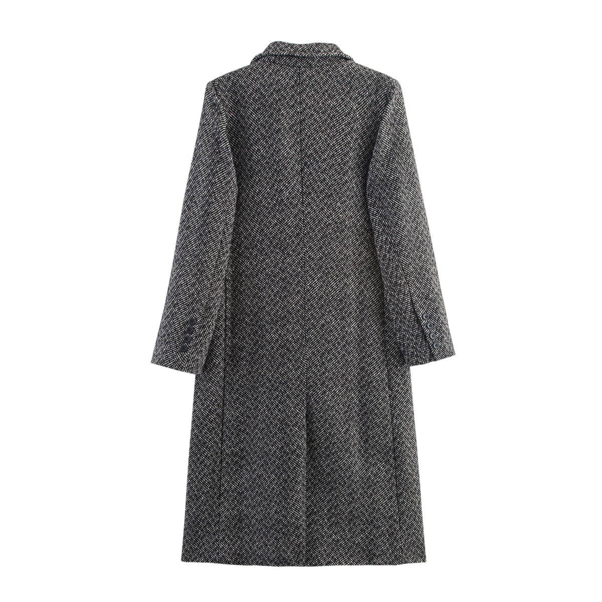 Elegant Women British Herringbone Pattern Loose Office Woolen Coat