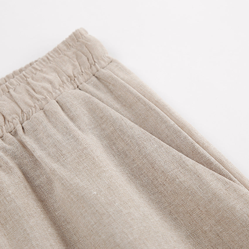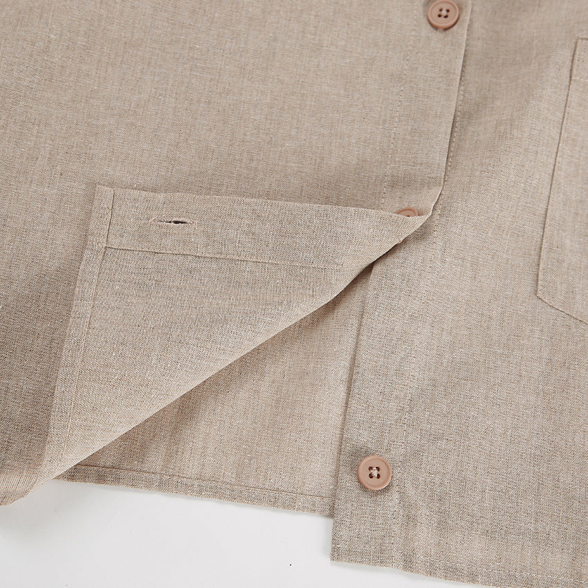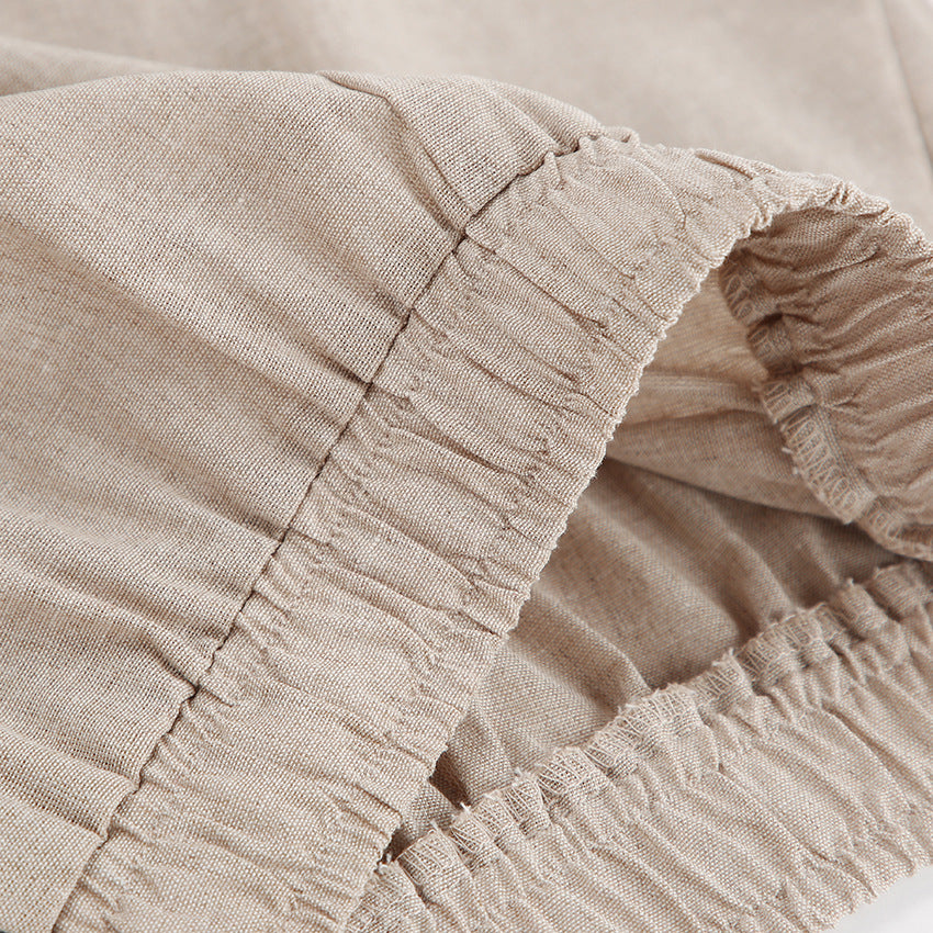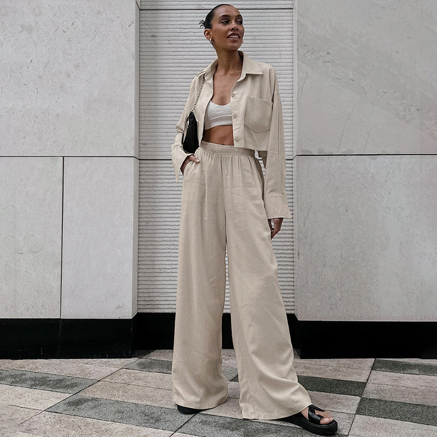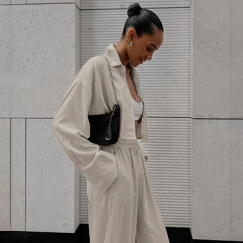 Khaki Long Sleeve Shirt Trousers Casual Cotton Linen Suit Spring Two Piece Suit Women Clothing