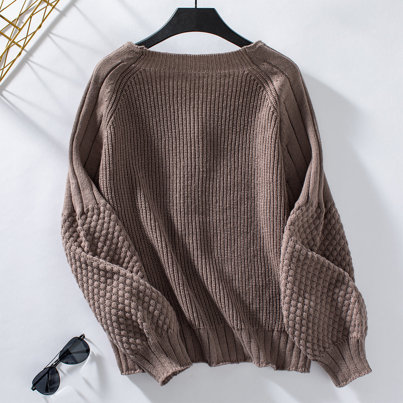 Autumn Winter Solid Color Buttons Knitted Cardigan Casual Loose Lantern Sleeve Sweater Women