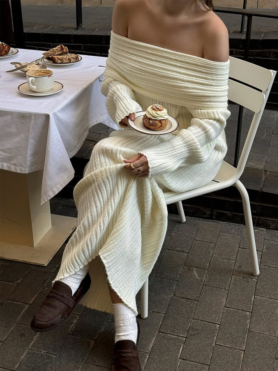 Lunel Knitted off Shoulder Long Sleeved Dress Autumn Winter off Shoulder Hip Knitwear Dress Women