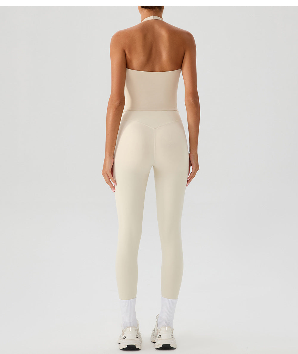 V neck Halter Sling Yoga Clothing Top Women Push up with Breast Pads Nude Feel Slimming Beauty Back Outer Vest