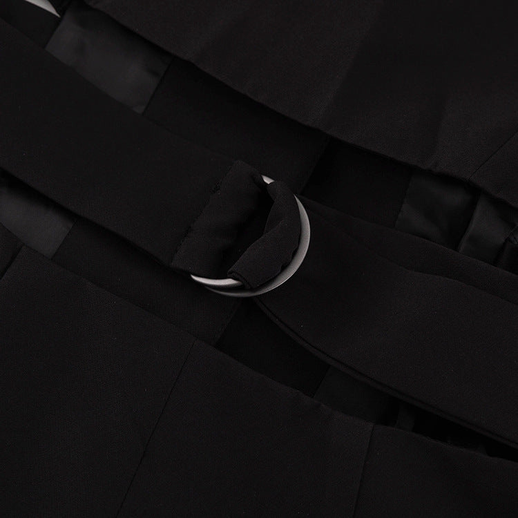 Hollow Out Cutout out Cropped Design High Sense Business Dress Office Single Breasted Long Sleeve Hip