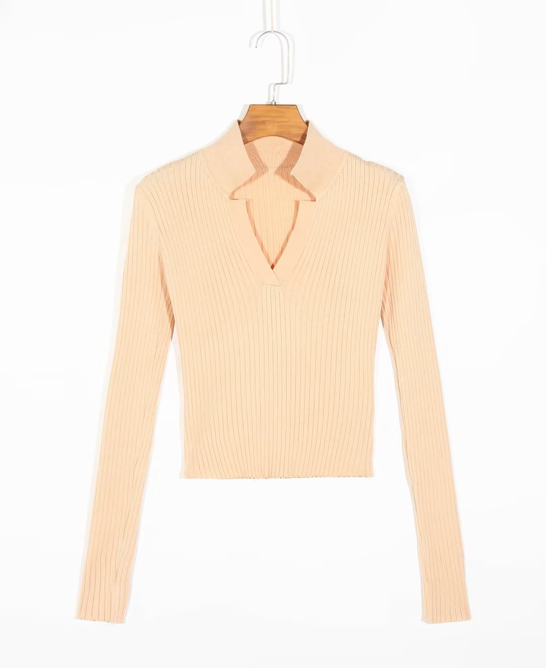 Autumn Sexy Slim Peter Pan Collar Bottoming T shirt Knitwear Women Top
