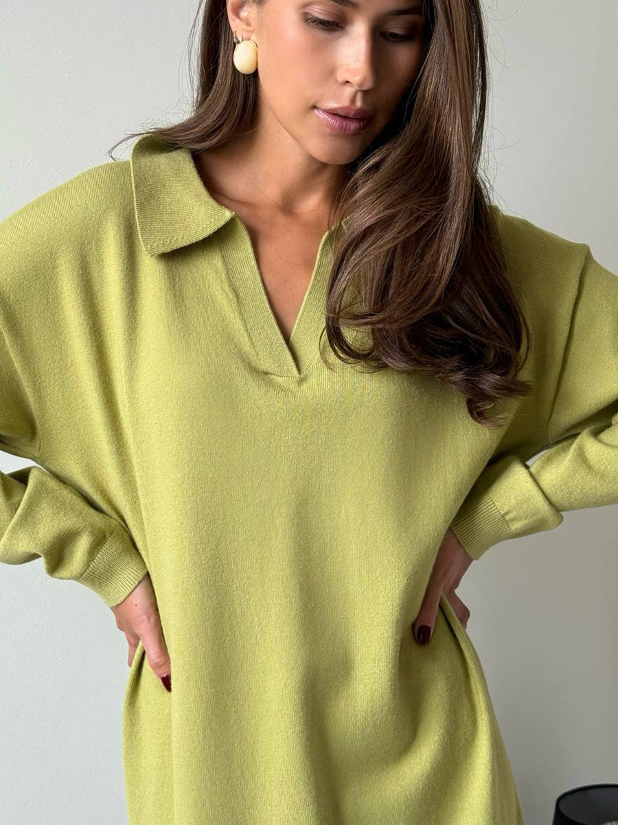 Fall Winter Scissors Collar Soft Woolen Long Elegant All Match Loose Maxi Dress