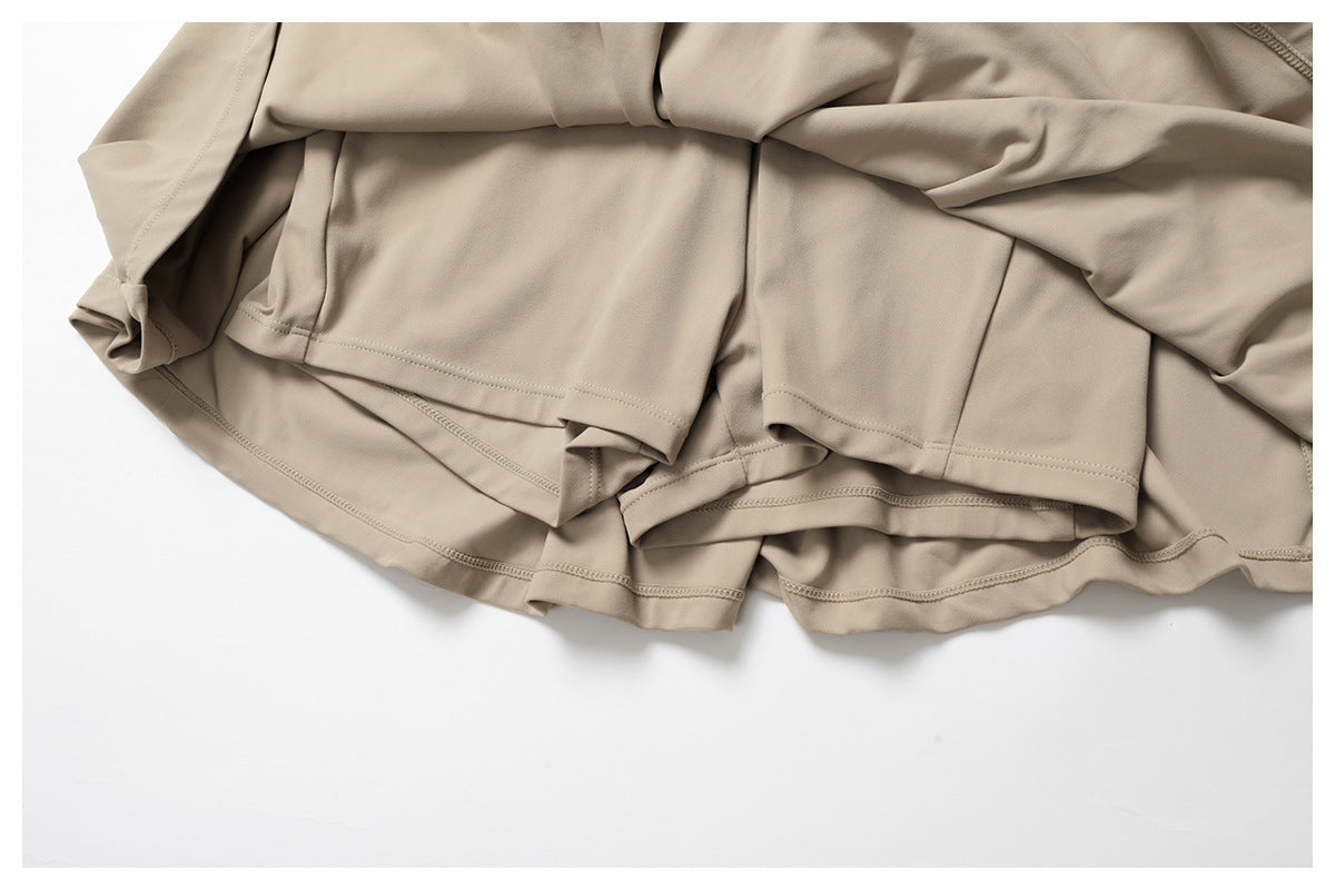 Sense Faux Two Piece Stand Collar Dress Outdoor Running Anti-Exposure Bottoming A line Dress Swing Tennis