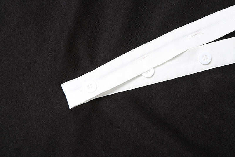 Women Clothing Autumn Elegant Contrast Color Slim Fit Sheath Collared Button Shirt Dress